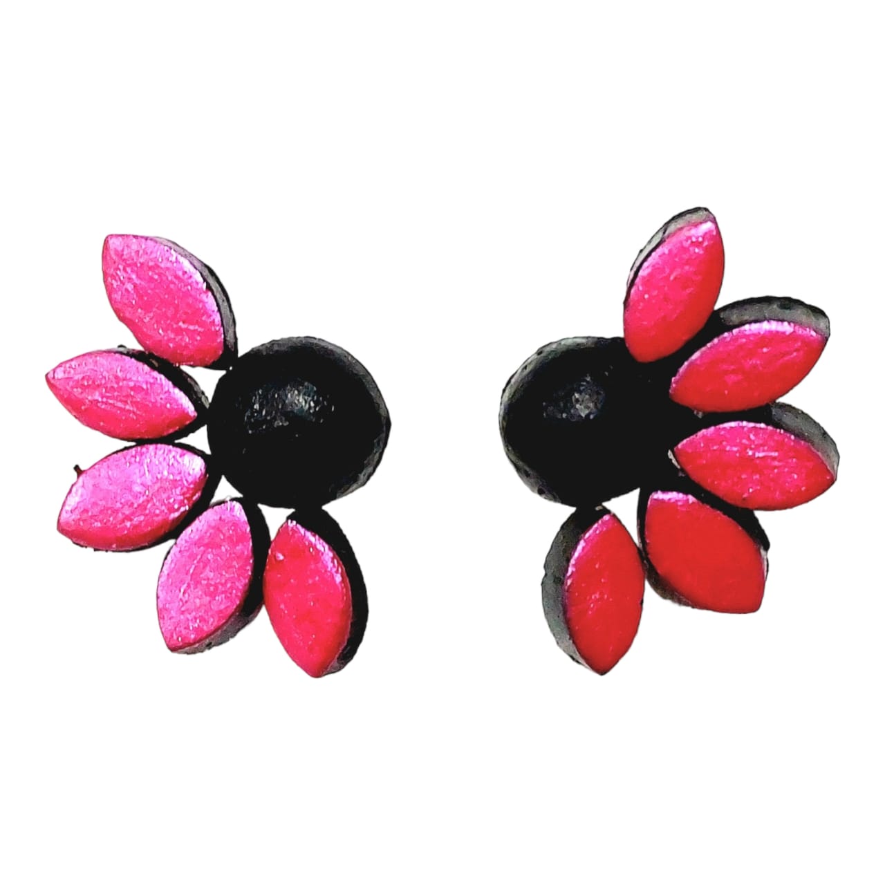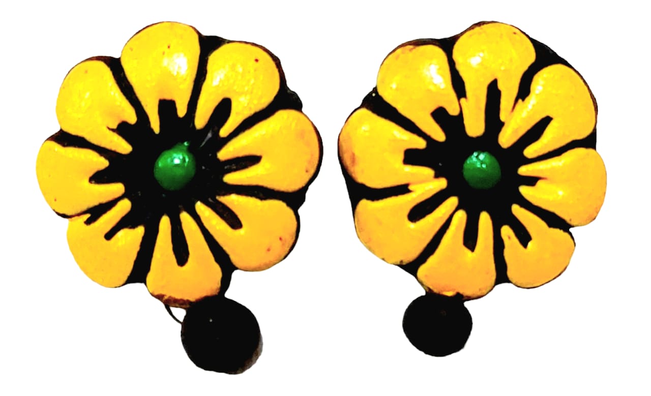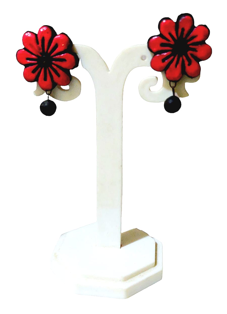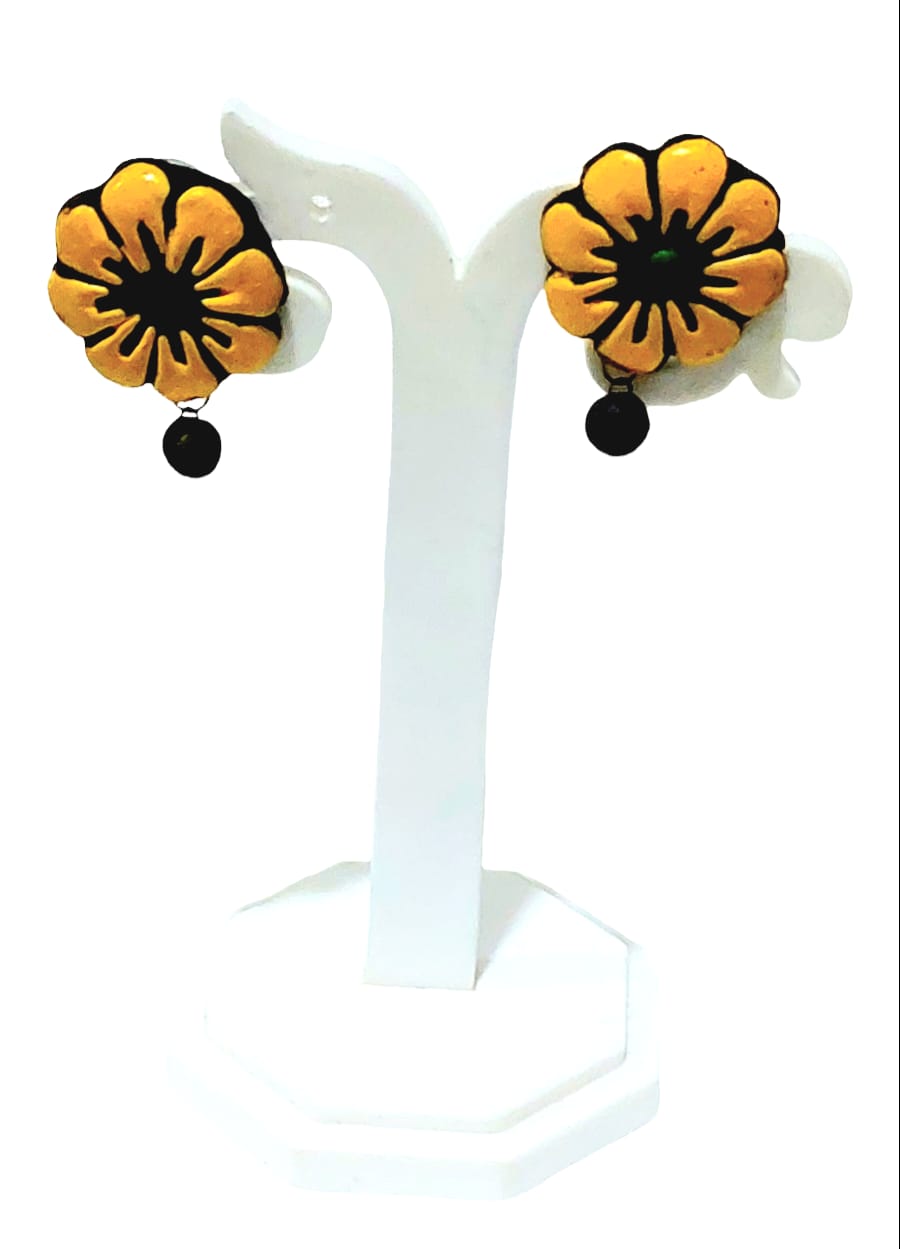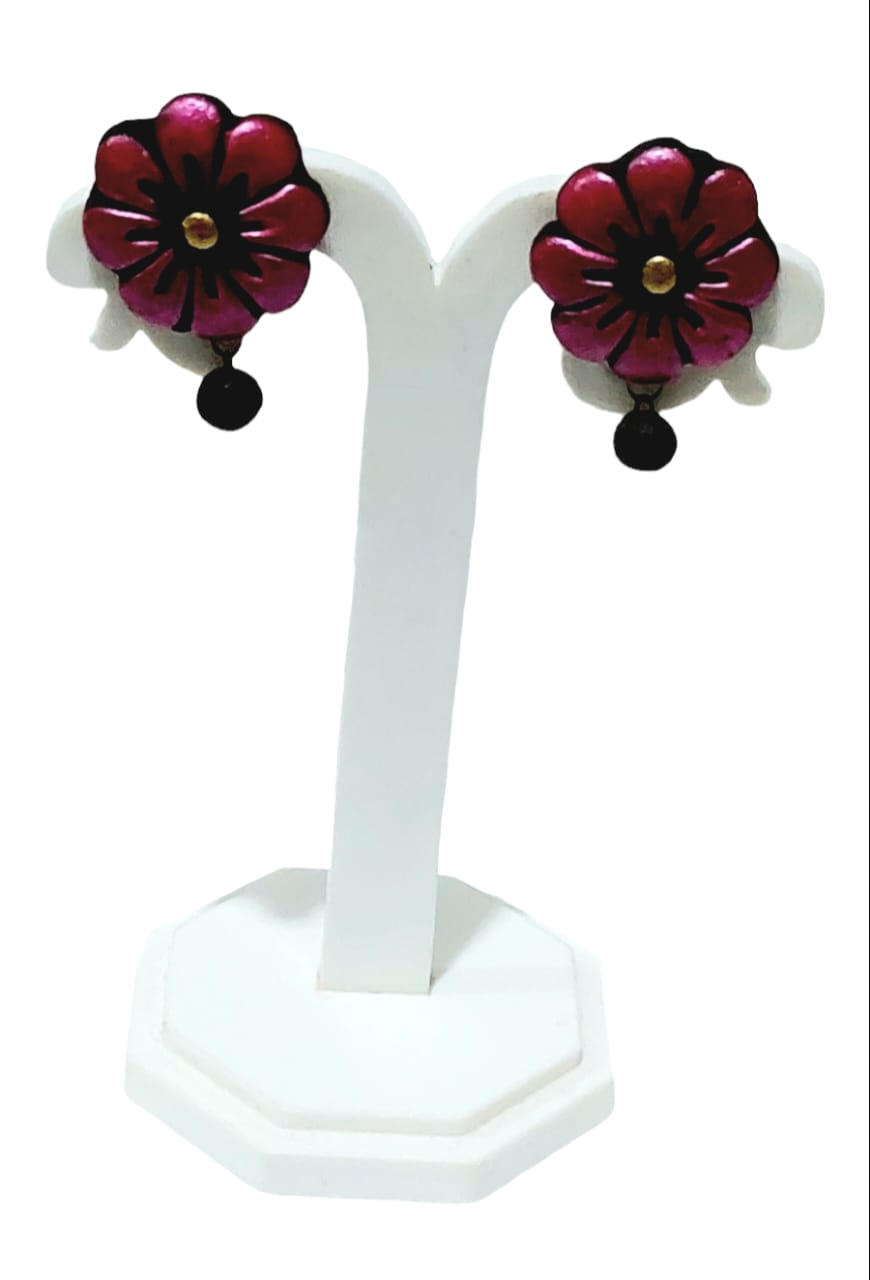 Terracotta Floral Design Stud Earrings For Women & Girls I Purely Handmade & Handpainted