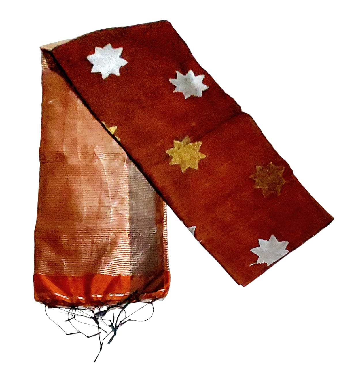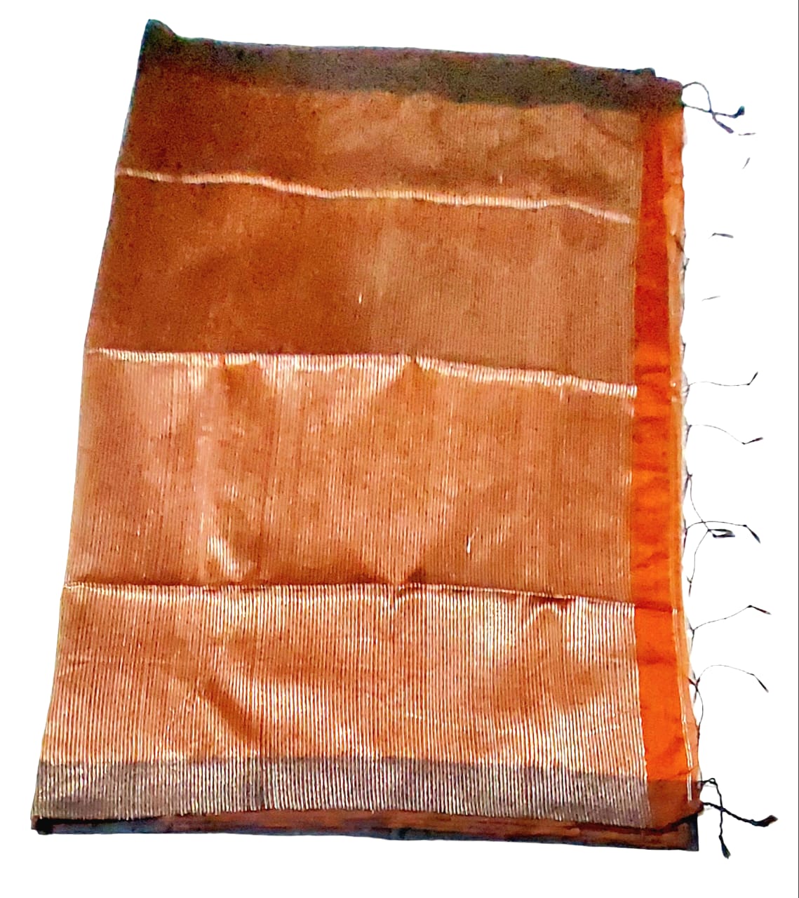 Matka Muslin Sarees With Copper & Silver Zari Work For Women & Girls