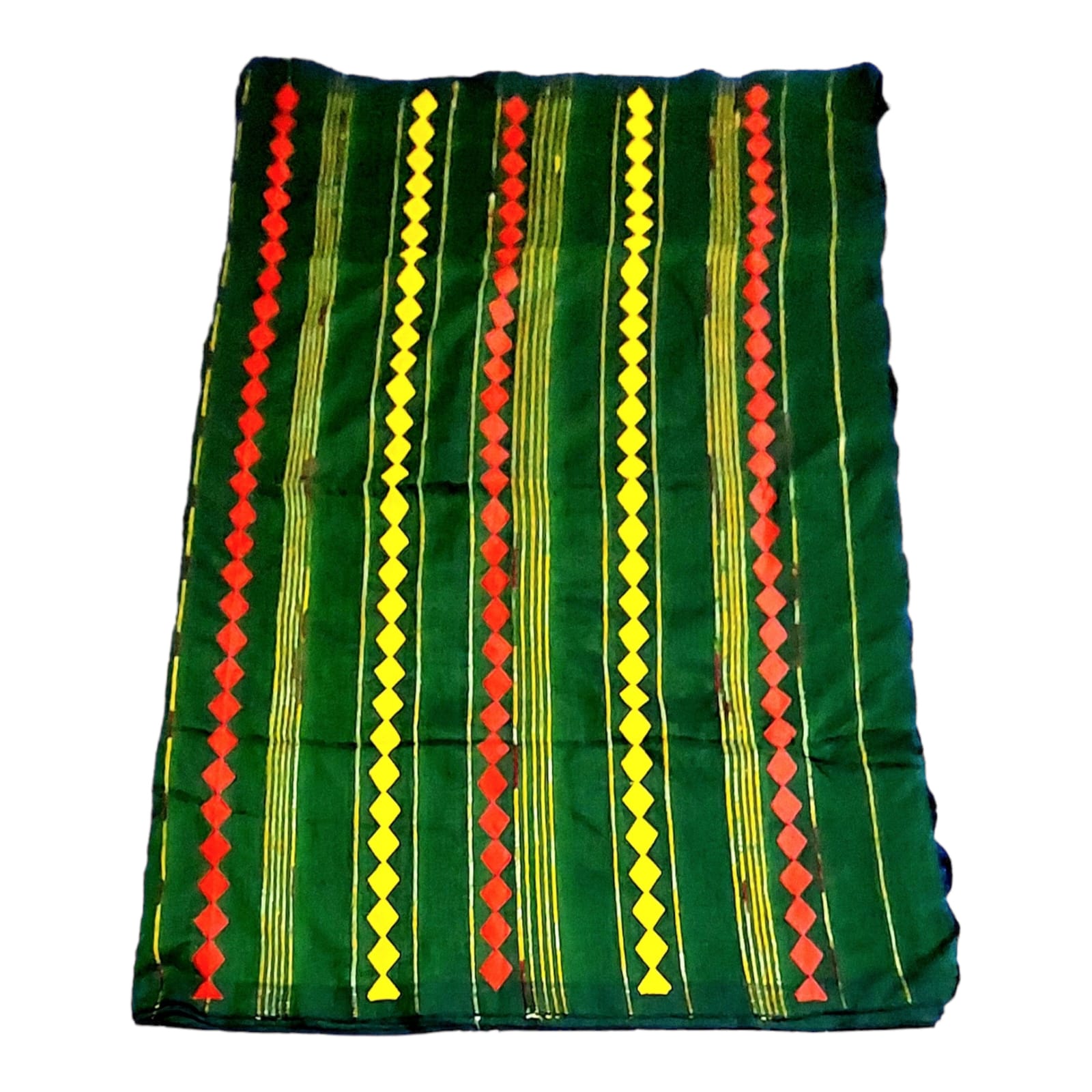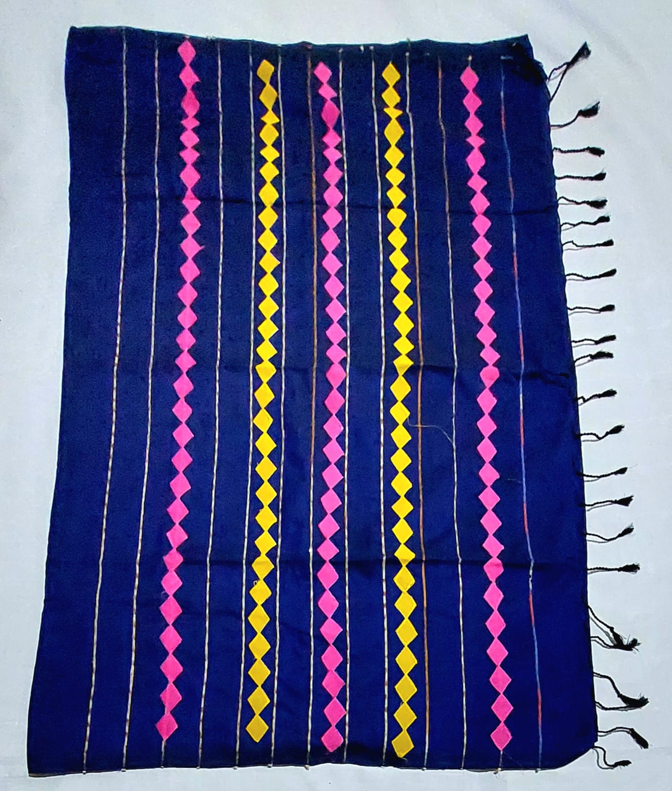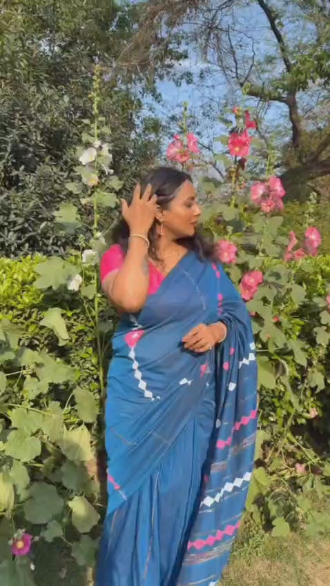 - Features intricate Khesh applique work, adding a unique and vibrant touch to the traditional saree design.