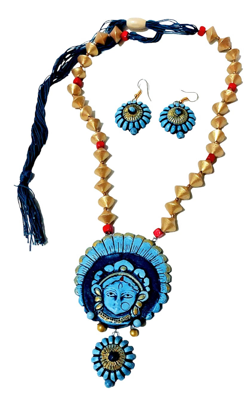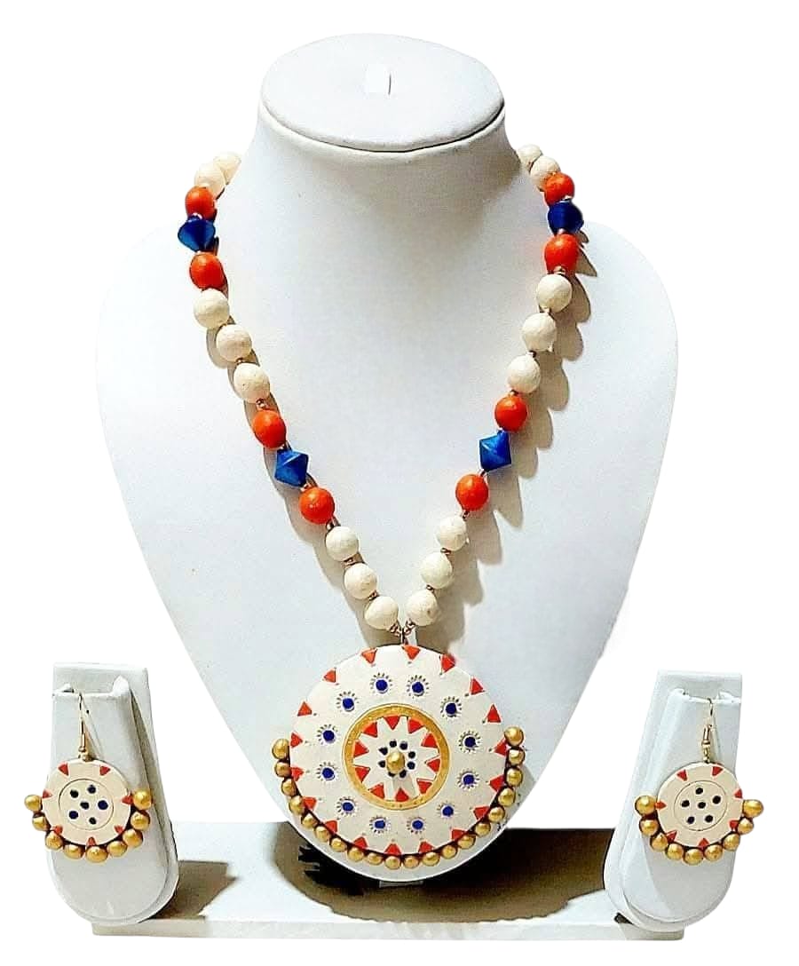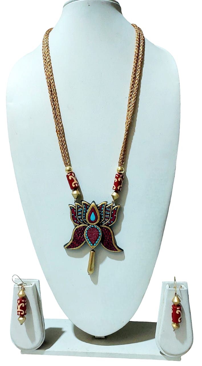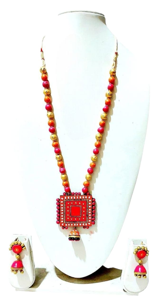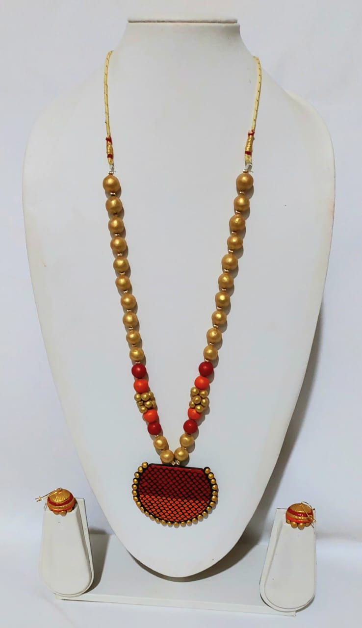 - Handmade Excellence: Meticulously crafted terracotta necklace set with intricate detailing.