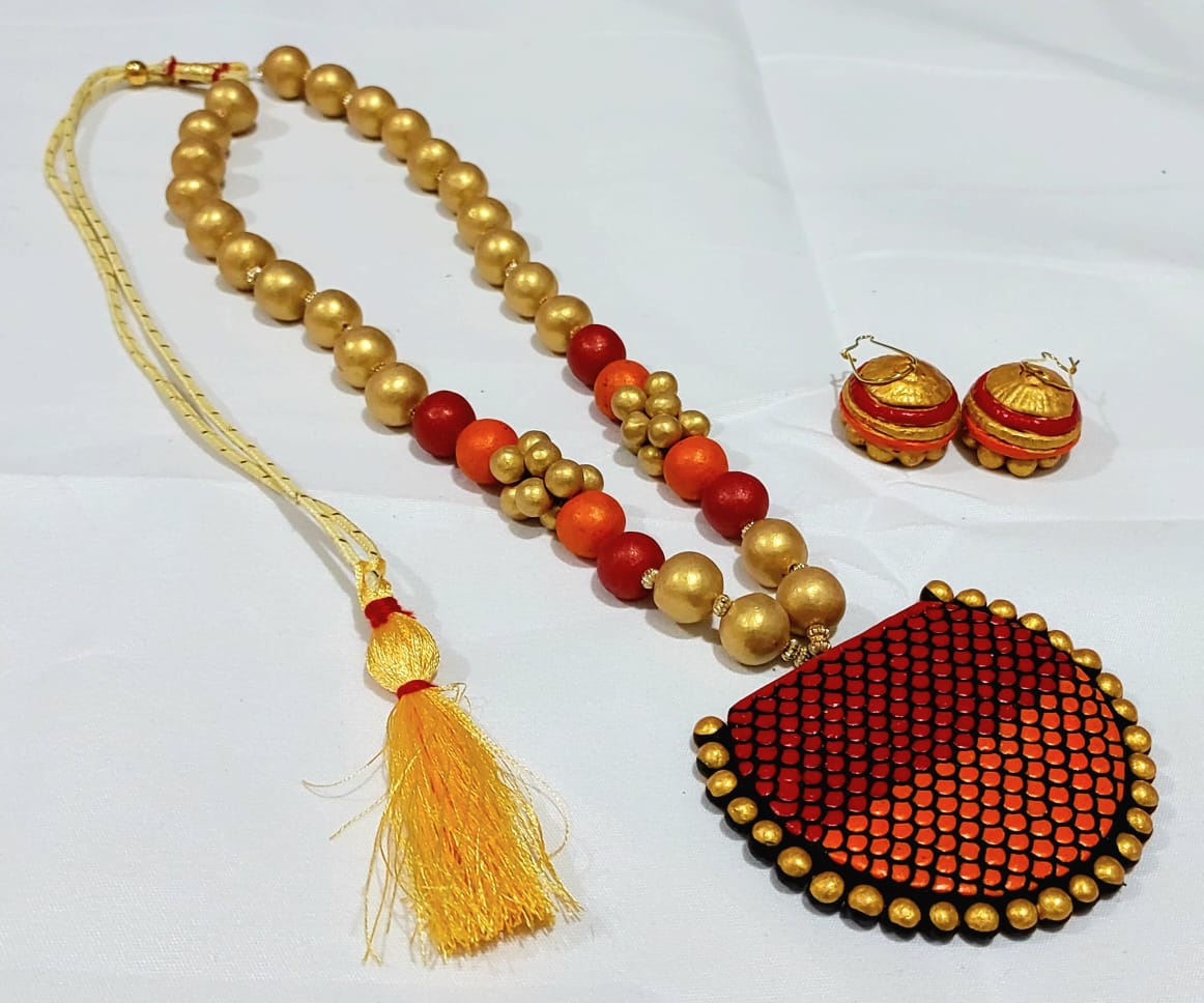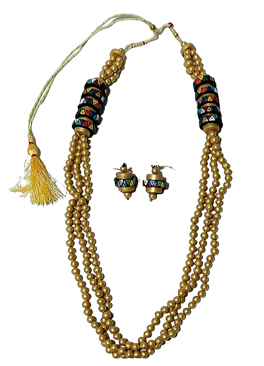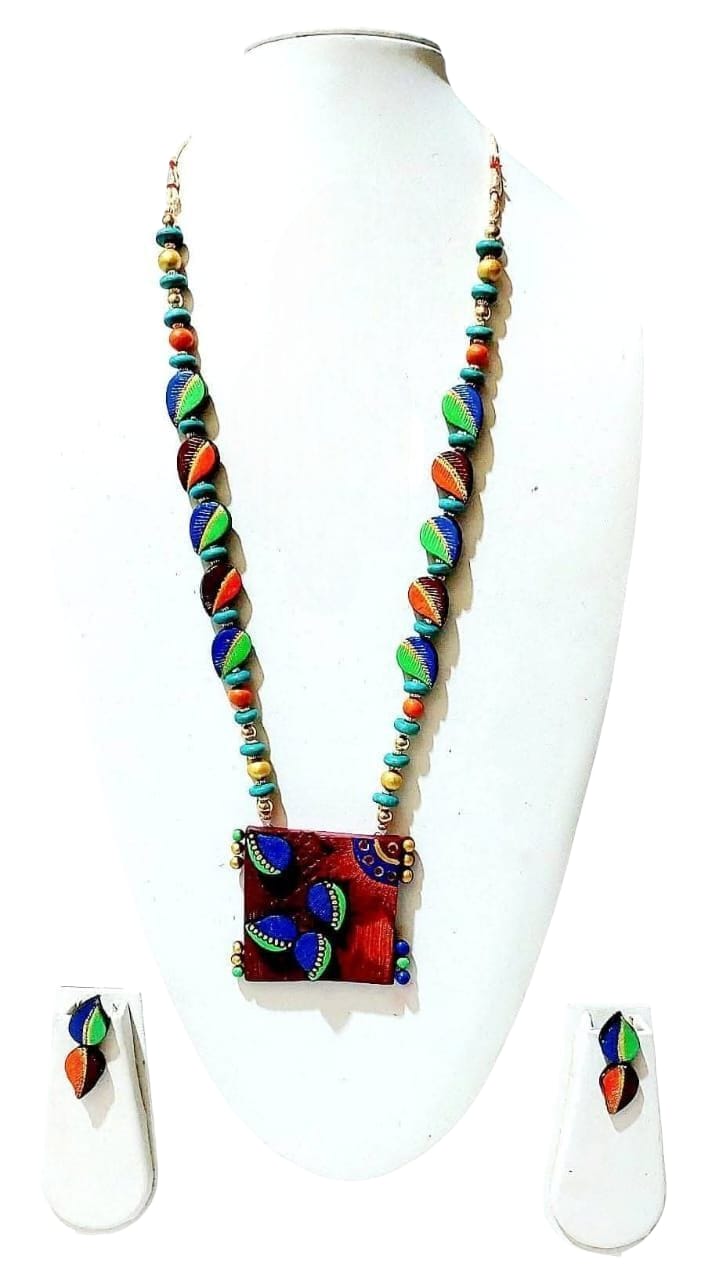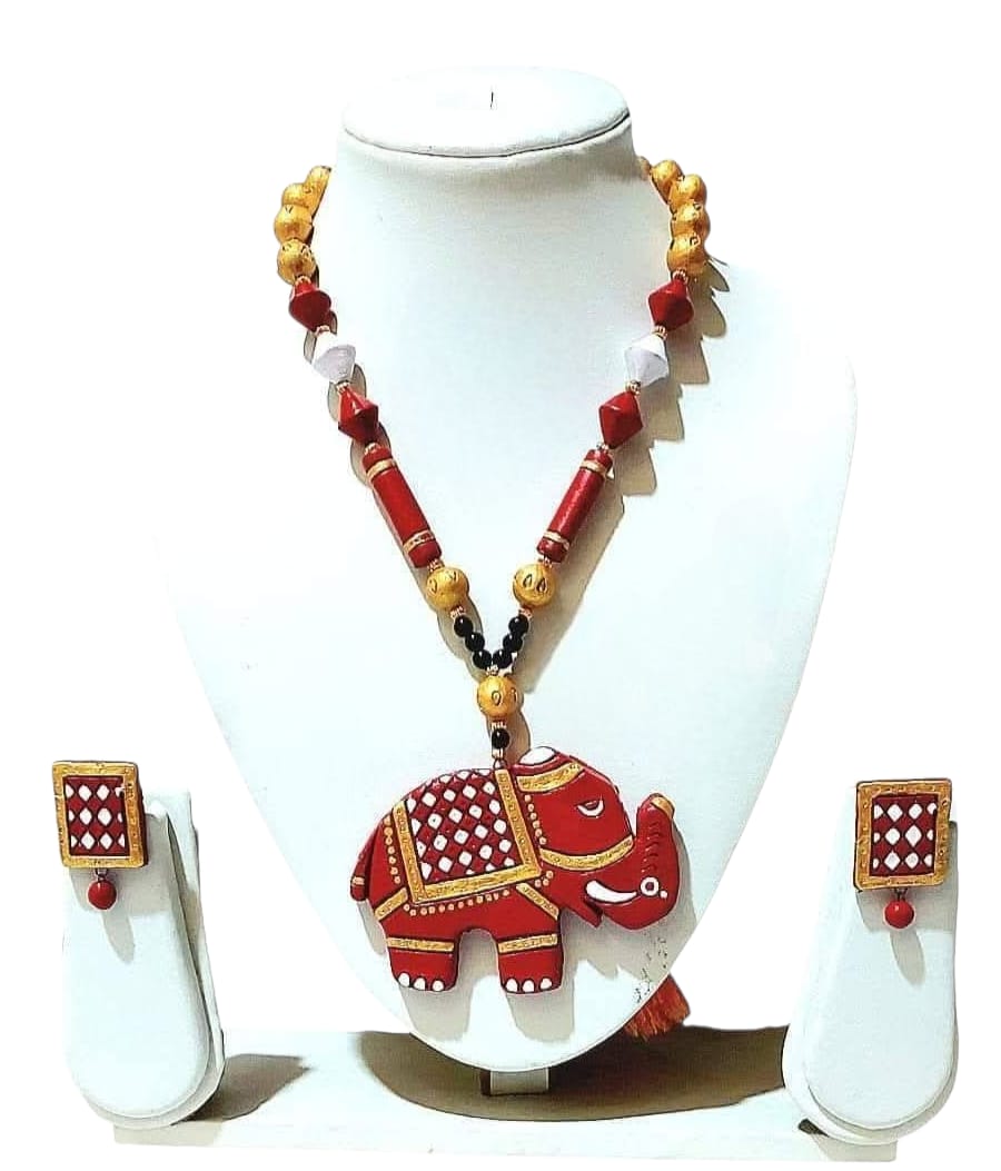 - Handmade Excellence: Meticulously crafted terracotta necklace set with intricate detailing.