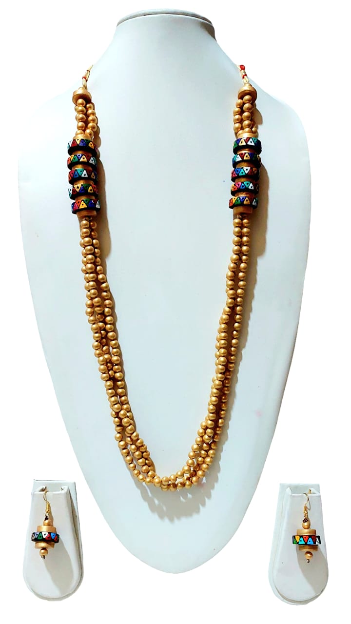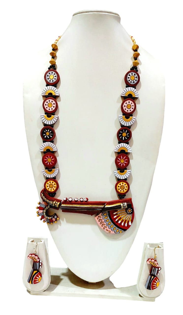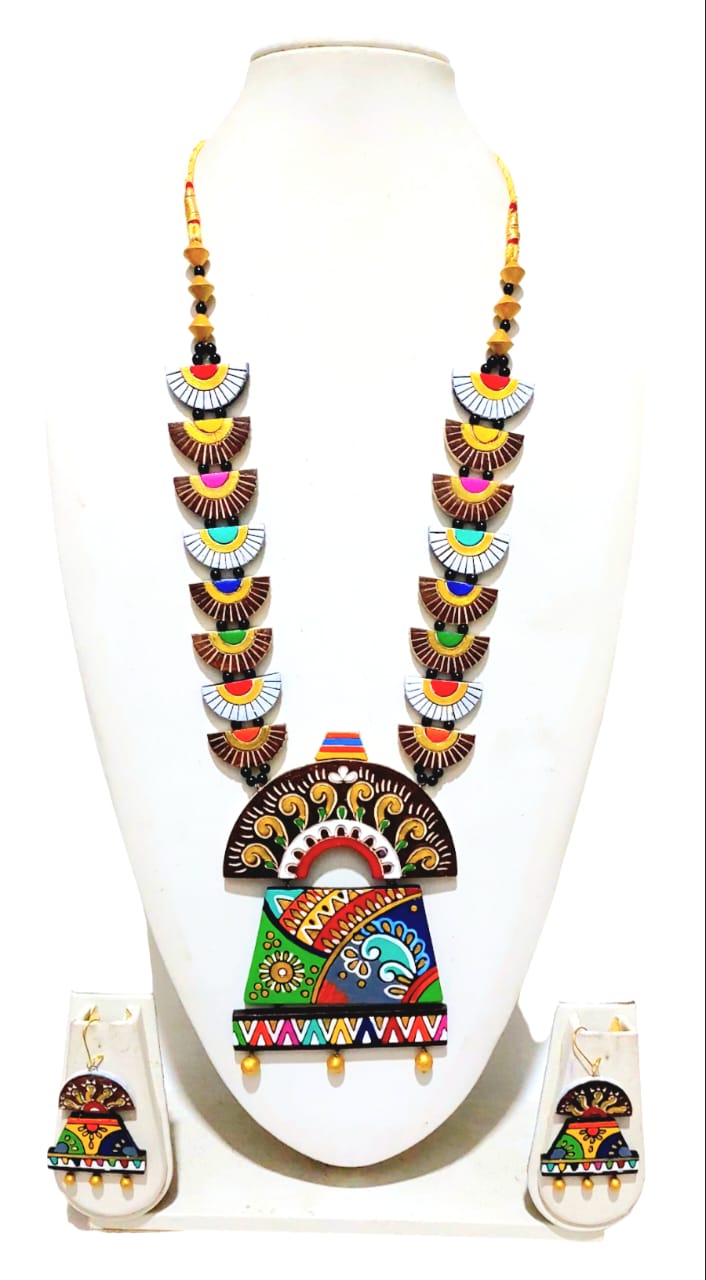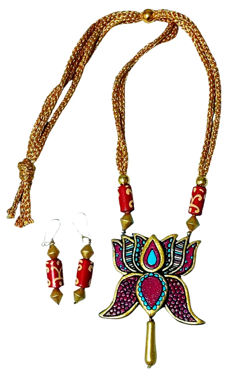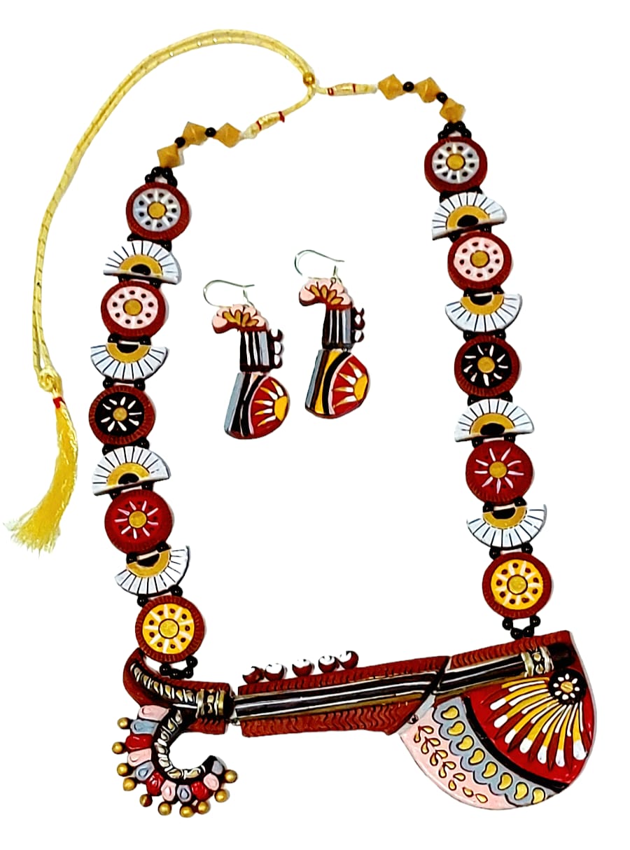 - Handmade Excellence: Meticulously crafted terracotta necklace set with intricate detailing.