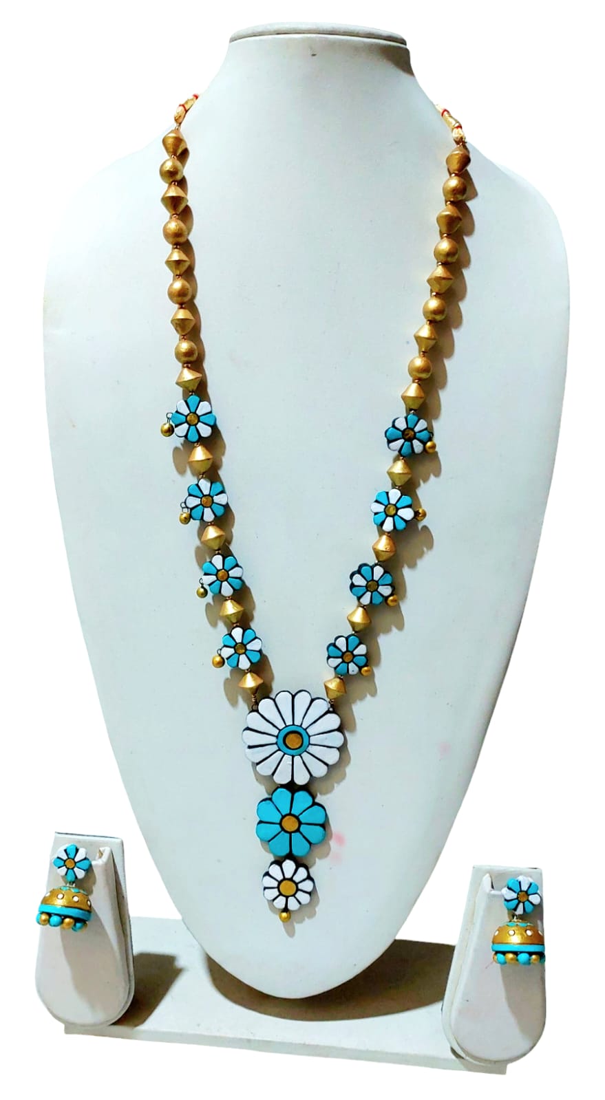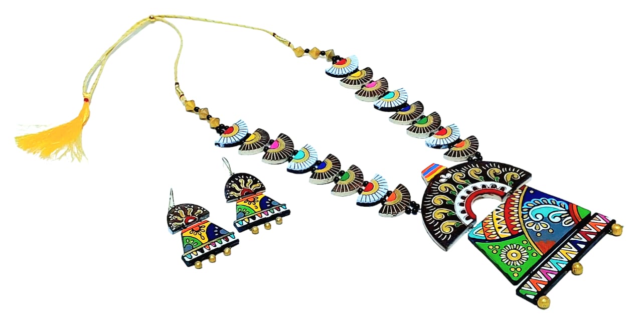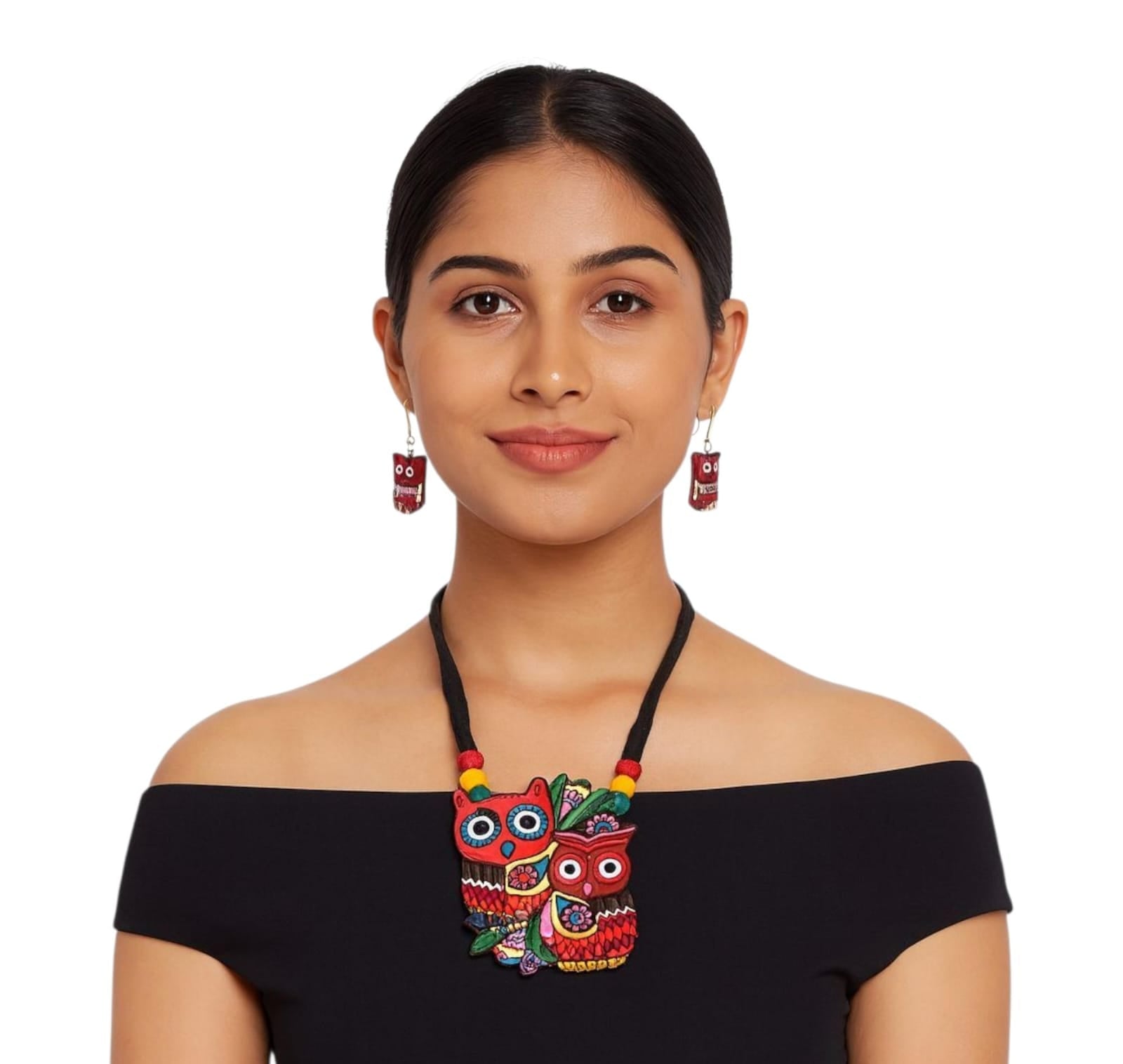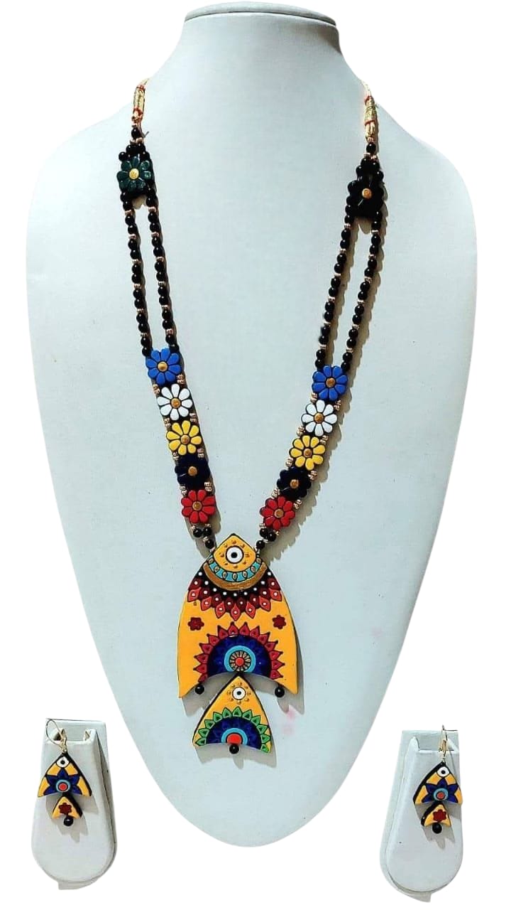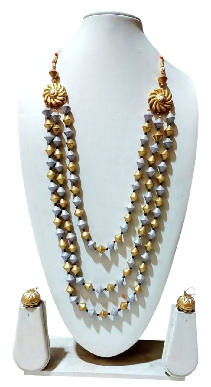 - Handmade Excellence: Meticulously crafted terracotta necklace set with intricate detailing.